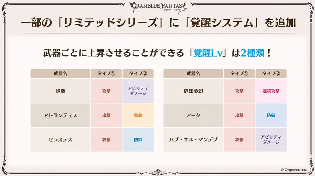 ◆一部リミテッド武器の覚醒追加