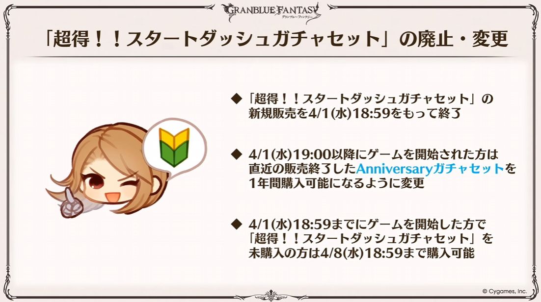◆スタートダッシュガチャセットの廃止・変更