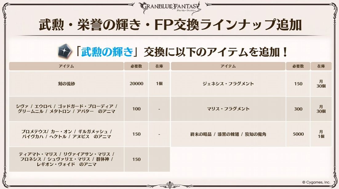 ◆武勲の輝き・栄誉の輝き・FP交換ラインナップ追加